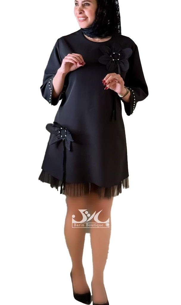 پیراهن کرپ گل اپلیکه